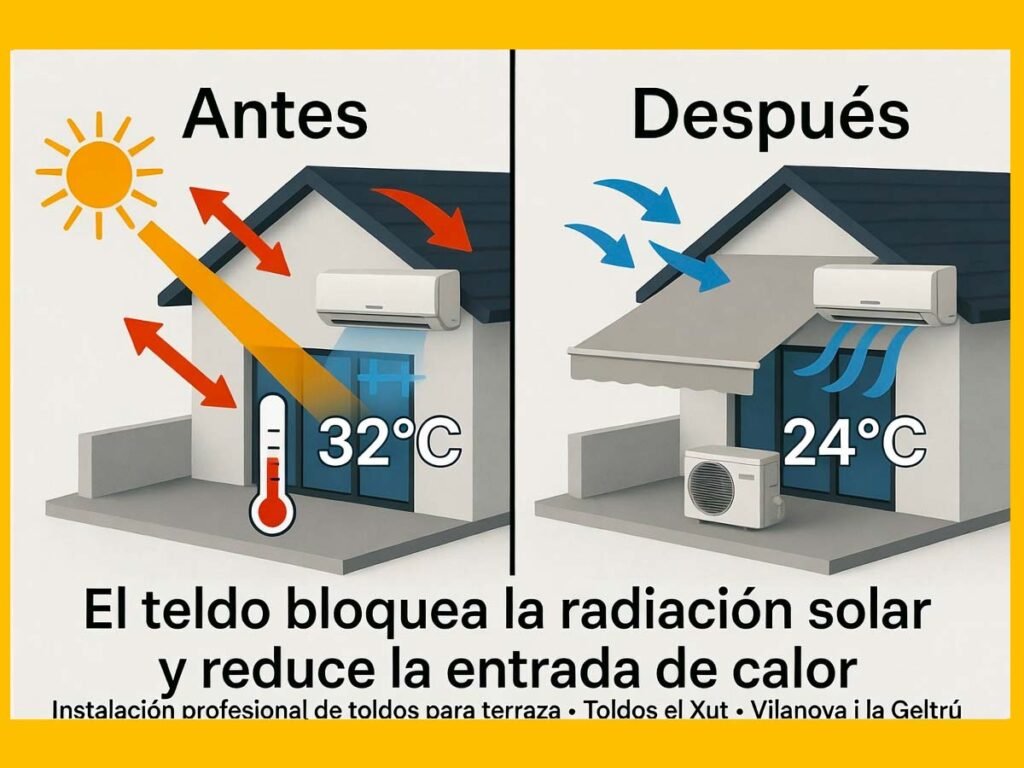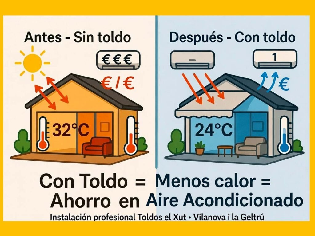Muchos de nuestros clientes en Vilanova i la Geltrú nos comentan que, tras instalar su toldo de terraza, han conseguido bajar entre 20 % y 40 % el consumo de climatización durante los meses de verano. ¡Un ahorro que se nota en la factura de la luz!